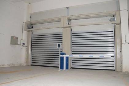 电机驱动链条传动机构,带动门帘顶部的连接件向上移动,每片门帘依次折叠,如同手风琴般堆叠在门洞上方,实现门体快速开启;关闭时传动机构反向运动,门帘逐片展开恢复原状。
